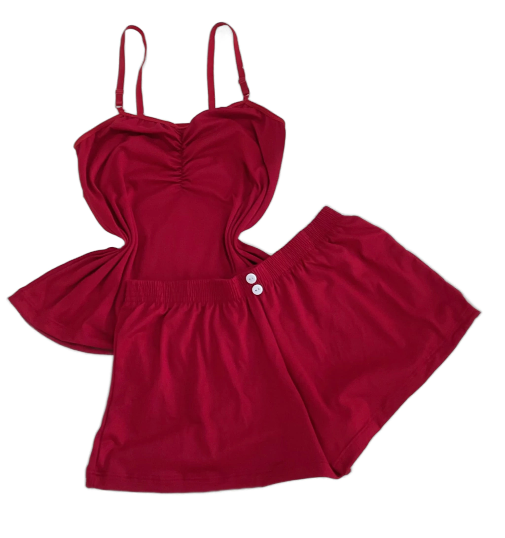 O Short Doll Yasmim combina conforto e estilo em uma peça delicada e versátil. Confeccionado em suede macio, é perfeito para noites relaxantes ou momentos de autocuidado. A blusa apresenta detalhe franzido e alças reguláveis que garantem ajuste impecável, enquanto o short, com botões decorativos, traz charme e modernidade ao visual.